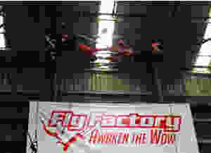 Those first few moments of climbing up the ladder to the board, you loose all senses. Then they hook up the harness, while holding you they get you to reach out and grab the bar, that point you are telling yourself WTF….then they say grab onto it with your other had “are you f***ing crazy” ..Then they expect you to jump and swing off the bar? I was pail when I landed on the net the first time. I was quite happy not to go back up.