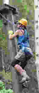 You are made to harness up. Climb a 10m power pole that will sway with your shaking. You then have to pull yourself up into a tiny platform. Then trust and jump out to catch the trapeze that is hanging just out of your reach. I cried, I yelled get me the f*** down, Im not doing this, and that was only a few pegs up the pole.