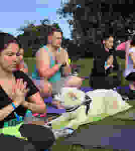 I was again looking around at all the women so comfortable in their own skin wearing just their crop tops and leggings. I was half their size Here I was all covered up in fear of being looked at and judged. No one cared what I looked like, just me!! There were even 2 dogs on their own Yoga Mats looking way more Zen than me.